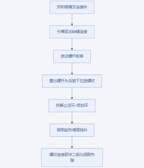 特別警示:螺桿頭螺紋多為左旋設計,反向旋轉易造成螺紋滑絲。某維修站數(shù)據(jù)顯示,30%的螺桿損傷源于錯誤旋向操作。